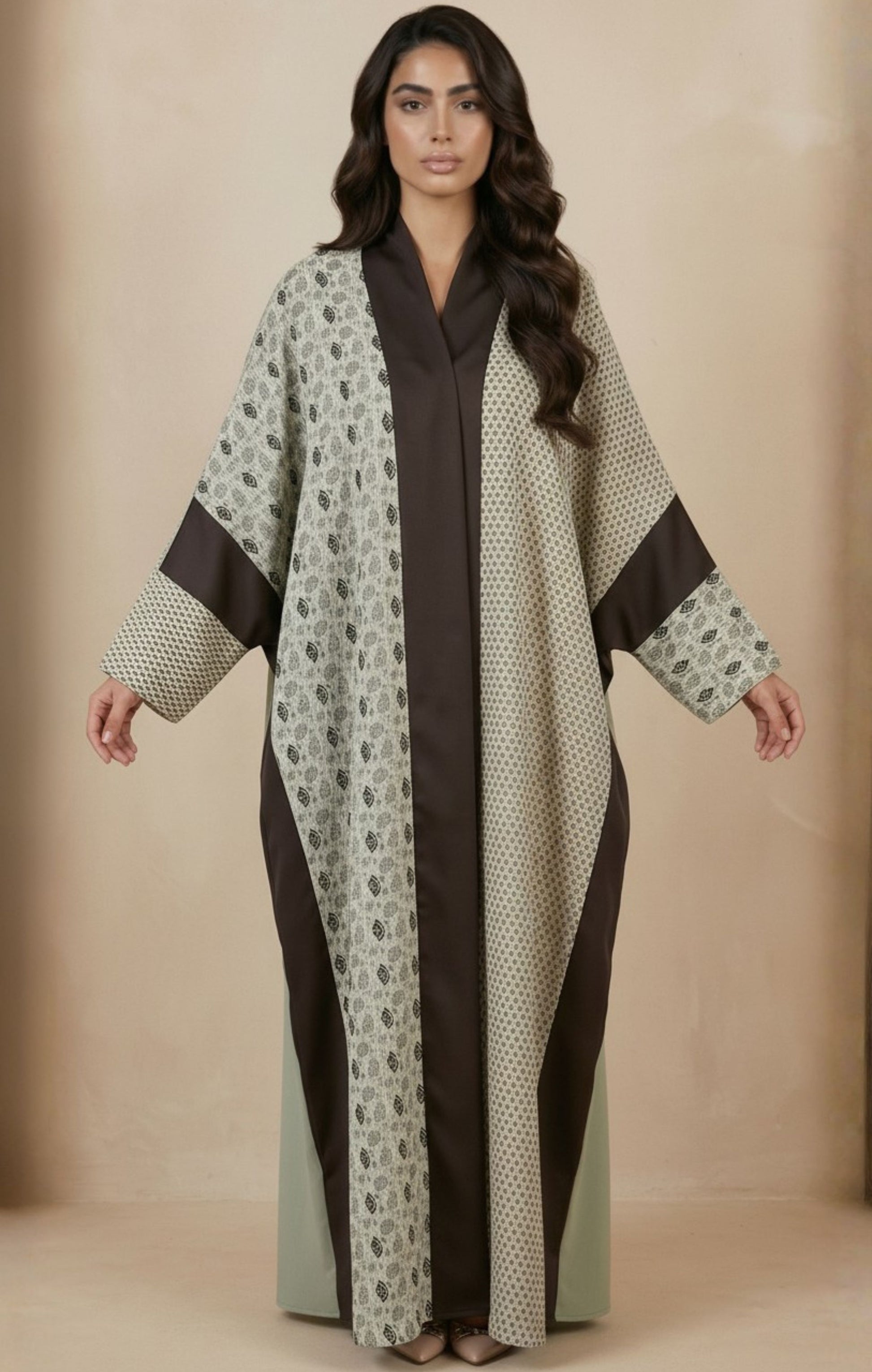 قطعة محتشمة بتصميم أنيق وسهل، مناسبة للمرأة التي تحب الإطلالة الراقية مع الراحة في نفس الوقت. تأتي بقَصّة انسيابية وتفاصيل متوازنة بأقمشة ونقشات هادئة تعطي شكلًا مميزًا بدون مبالغة.