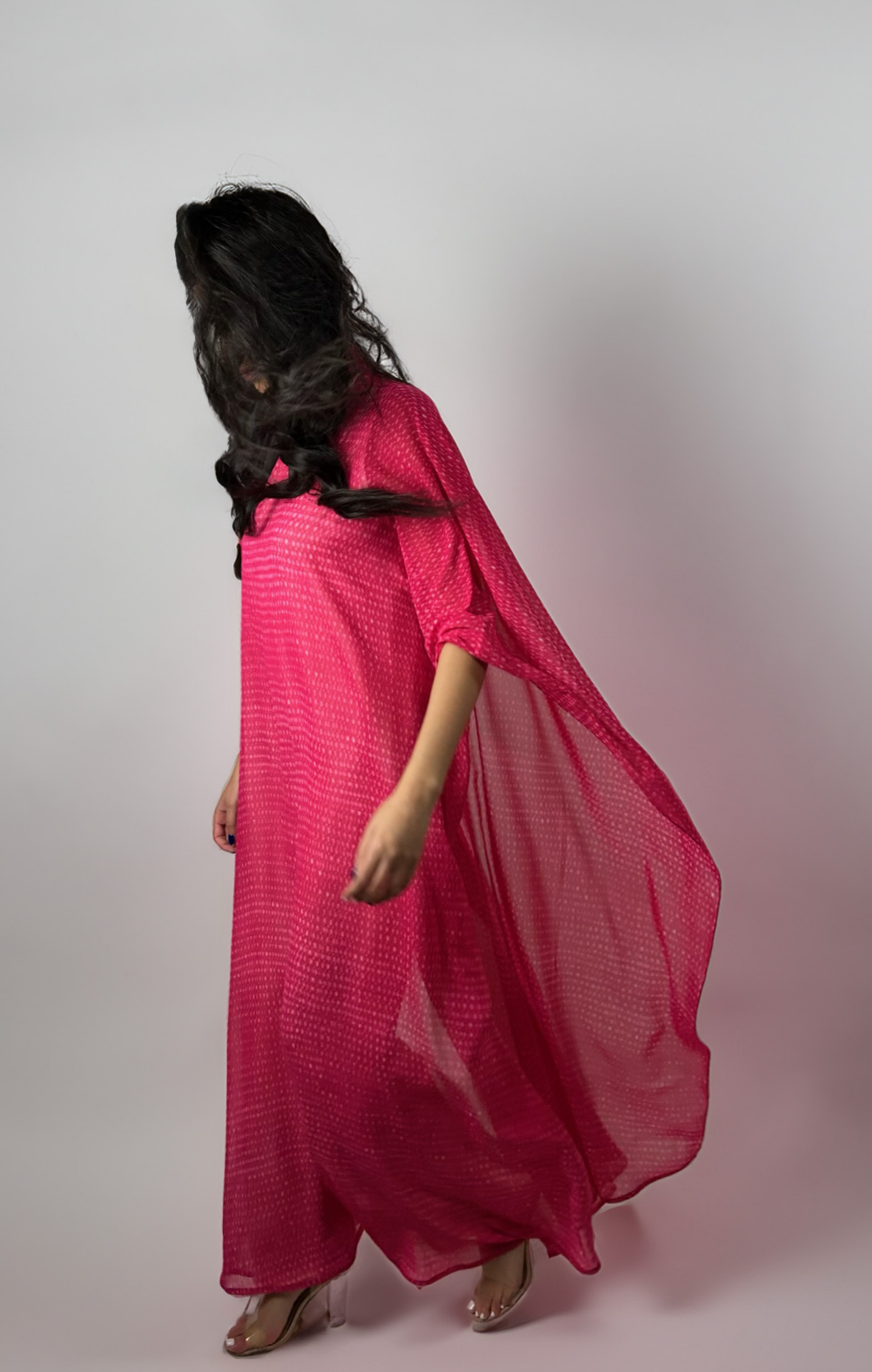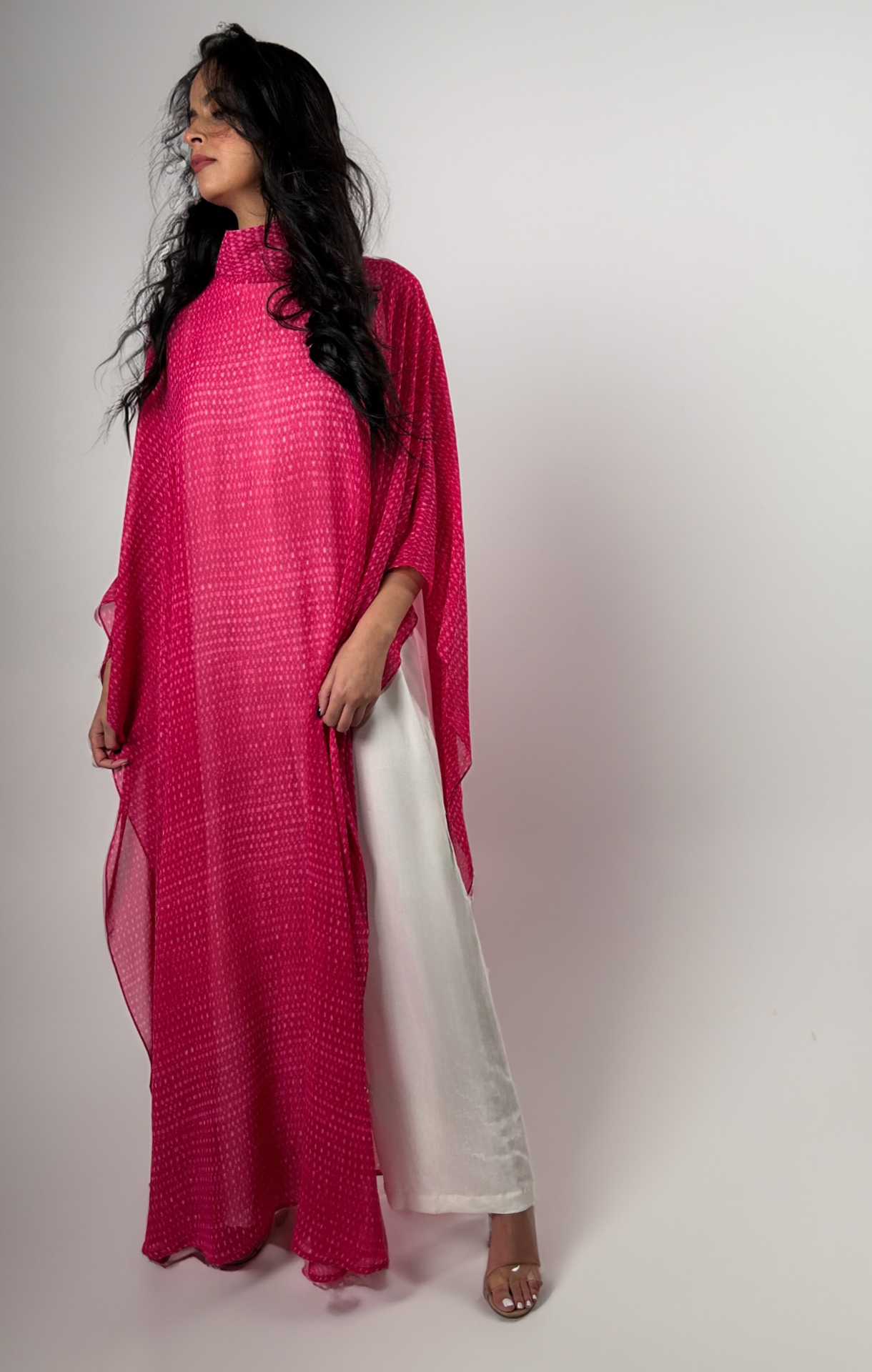 Yasma chiffon set in antique fuchsia , washed silk jumpsuit included in the set.