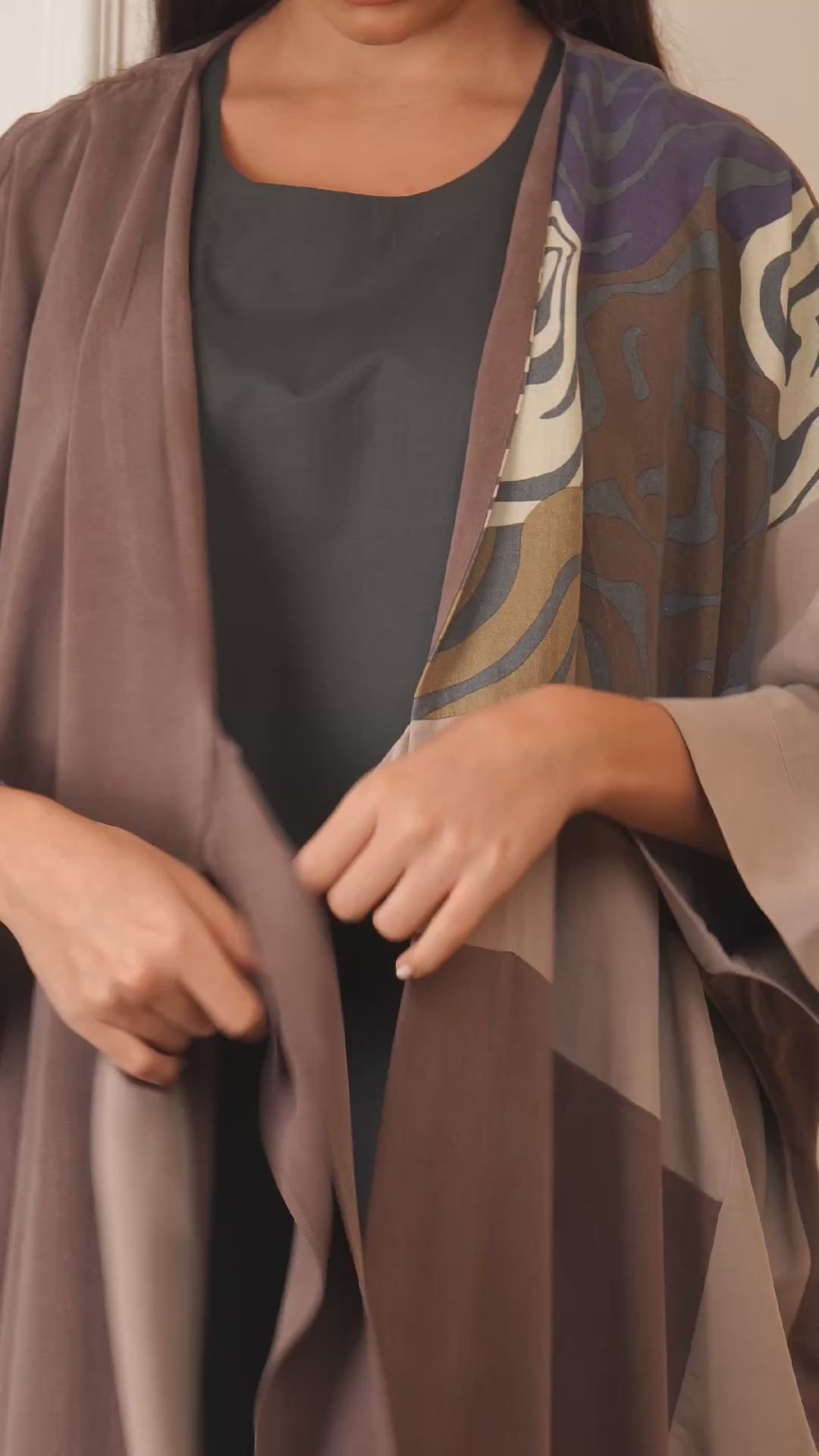 Light Brown Abaya with Front Pattern in Modal Fabric