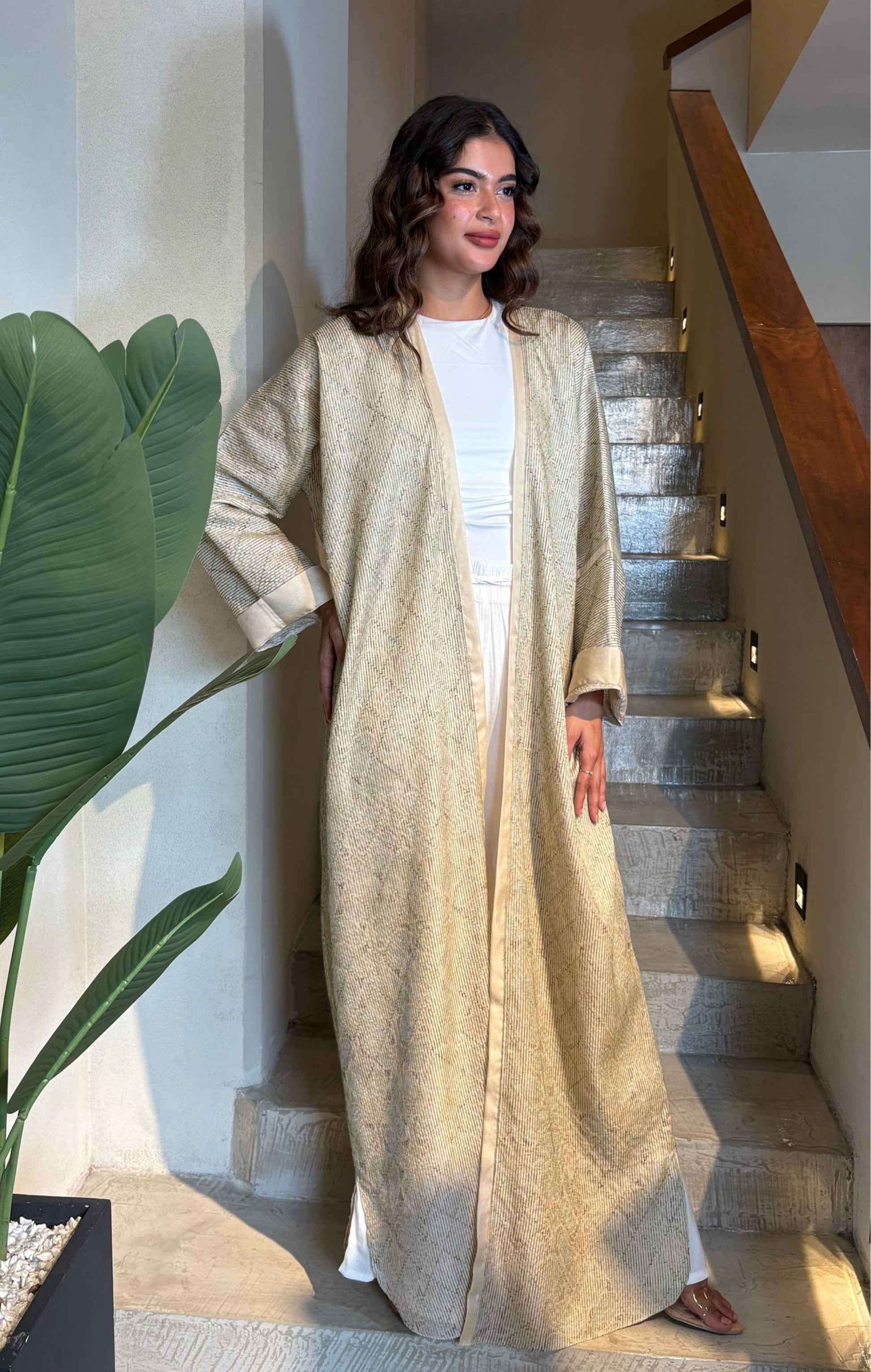 A timeless piece designed for modern women who value both style and modesty. Crafted in a soft golden-beige tone with subtle textured detailing, this abaya captures understated luxury. Its smooth finish and elegant trims make it perfect for evening gatherings, formal occasions, or chic daytime wear.